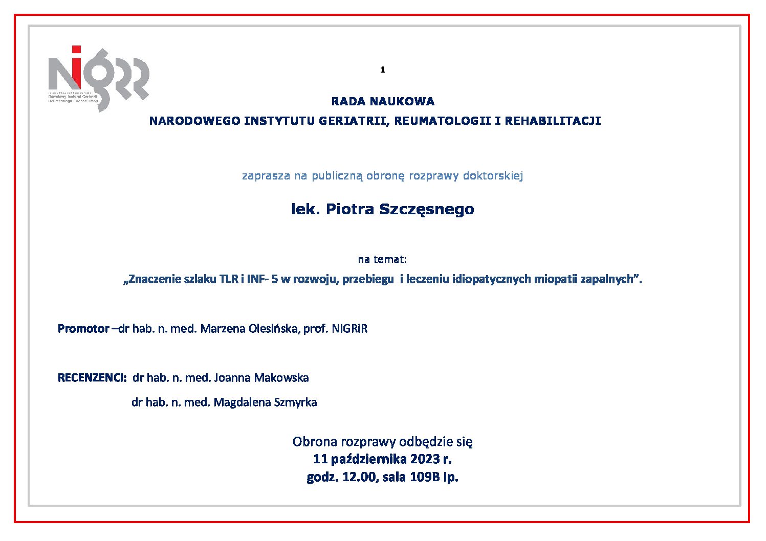 Szanowni Państwo! W imieniu prof. dr hab. n. med. Brygidy Kwiatkowskiej, Konsultanta Krajowego w dziedzinie Reumatologii oraz dr hab. n. med. Roberta Olszewskiego, prof. NIGRiR, Kierownika Zakładu Gerontologii, Zdrowia Publicznego i Dydaktyki, serdecznie zapraszamy do udziału w Konferencji z okazji Światowego Dnia Osteoporozy 2023. Konferencja jest w ramach projektu „Program Profilaktyki Osteoporozy Narodowego Instytutu Geriatrii, […]